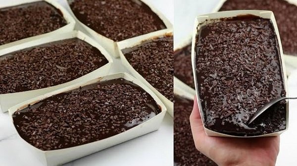 - نقوم بوضع النوتيلا ومكعبات الشوكولاتة، وتقلب المكونات معاً ويرفع من على النار ويترك جانباً حتى يبرد ونوزعه فوق الكيك.