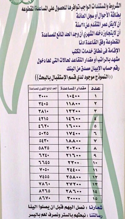 - ألا يزيد دخل المستفيد عن 2000 ريال.