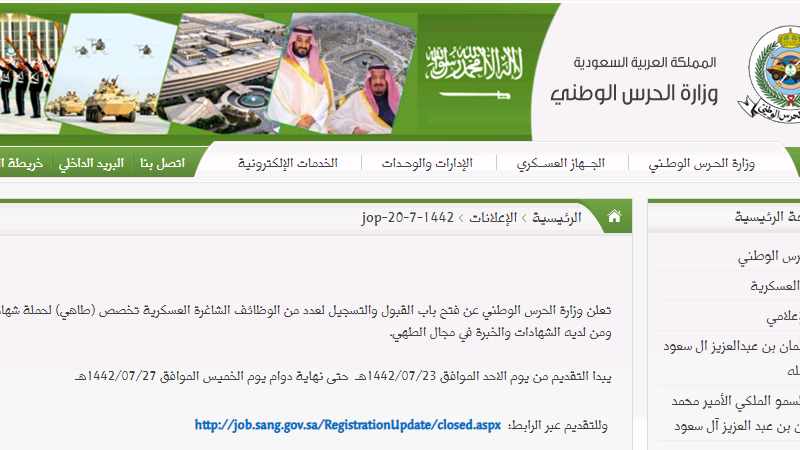 رابط وخطوات التسجيل في وظائف الحرس الوطني 1442