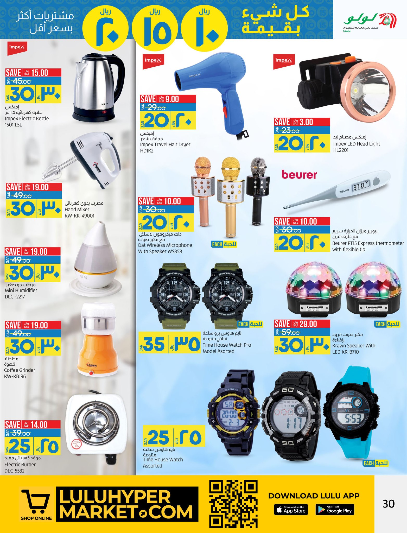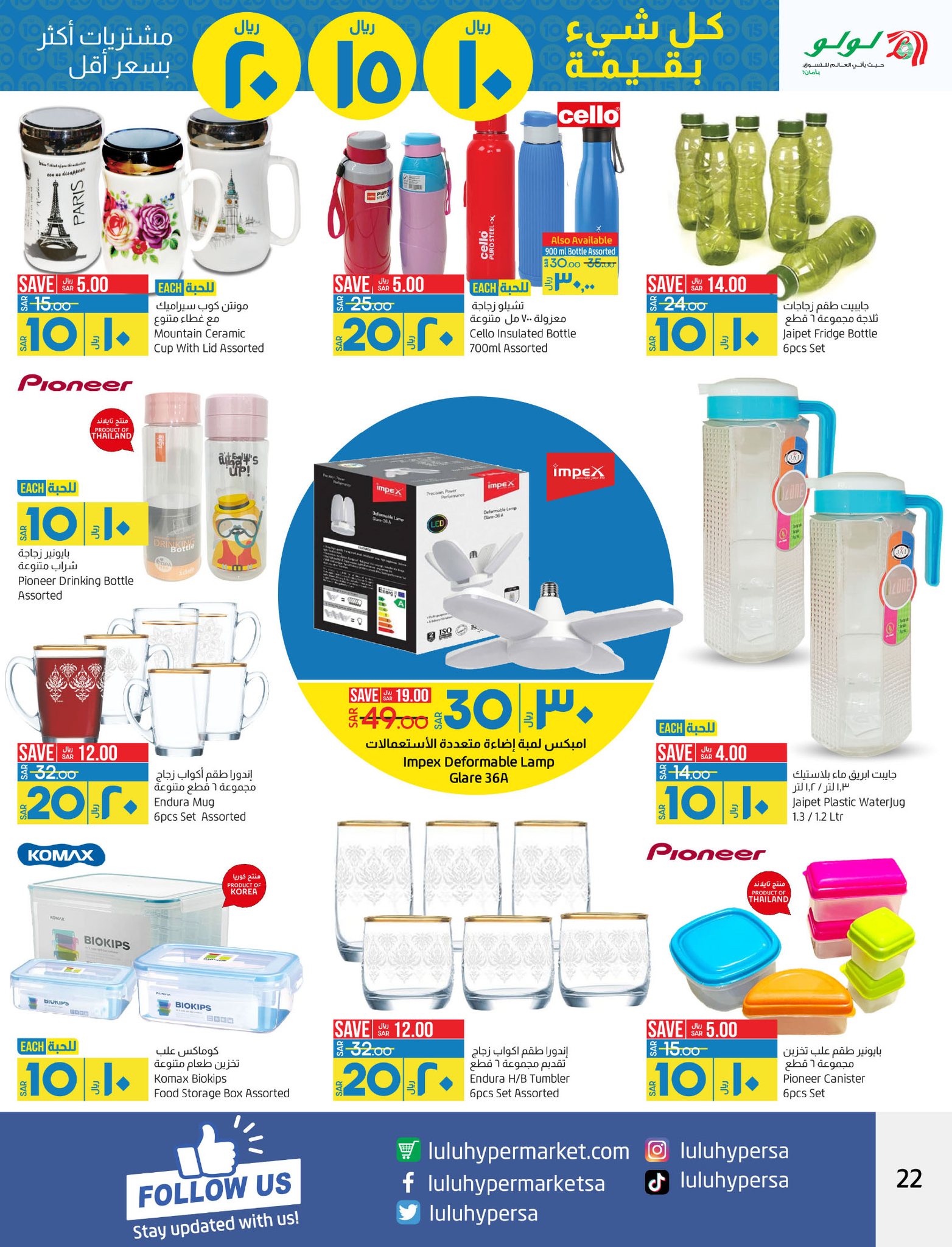 عروض لولو هايبر ماركت تقدم أوفر العروض والتخفيضات في مهرجان عروض الموسم ب 10 و 15 و 20 ريال سعودي، وذلك على مجموعة هائلة من المنتجات المتنوعة من أهمها عروض السلع الغذائية والمنتجات الاستهلاكية، بالإضافة إلى عروض الأربع أيام على الأسماك والخضروات والفواكه، هذا بالإضافة إلى أقوى العروض على الأدوات المنزلية التي لا غنى عنها في كل بيت لمساعدة ربات البيوت في أداء روتينهم اليومي براحة واستمتاع مع هذه الأدوات الجيدة والتي توفرها بأفضل الأسعار وأجود الخامات، ومن خلال موقع ثقفني نقدم لكم في هذا المقال أفضل عروض قسم الأدوات المنزلية والأجهزة الكهربائية.