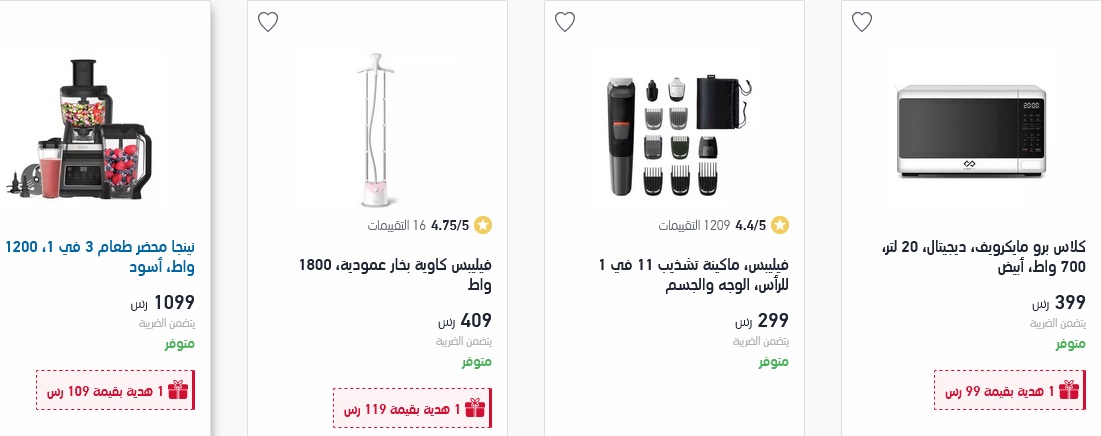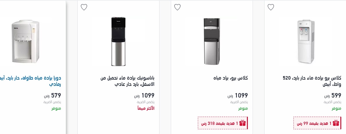 - كلاس برو برادة ماء حار بارد، قوة 520 واط متوفرة باللون الأبيض بسعر 599 ريال سعودي، مع هدية شراء مجانية بقيمة 99 ريال.