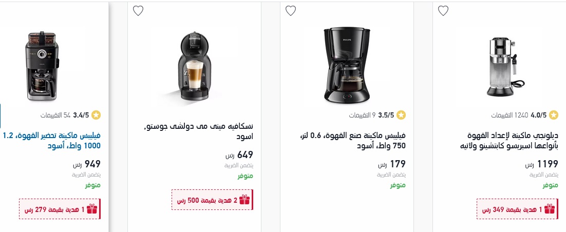 - نسكافيه ميني مي دولشي جوستو متوفرة باللون الأسود بسعر 649 ريال سعودي، مع هديتين بقيمة 500 ريال.