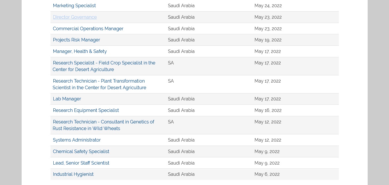 وهناك العديد من الوظائف الأخرى المتاحة كما في الصور السابقة، والتي يمكنكم الإطلاع على تفاصيلها من خلال الدخول على موقع جامعة الملك عبد الله والتقنية قسم الوظائف، ومن خلال الضغط على المسمى الوظيفي يتم نقلك إلى صفحة بها جميع المهام الوظيفية والشروط والمتطلبات اللازمة بالإضافة إلى تبويب التسجيل في الوظيفة، والذي يمكنك التسجيل في الوظيفة من خلال الضغط على كلمة Apply Now وإدخال جميع البيانات المطلوبة للتسجيل.