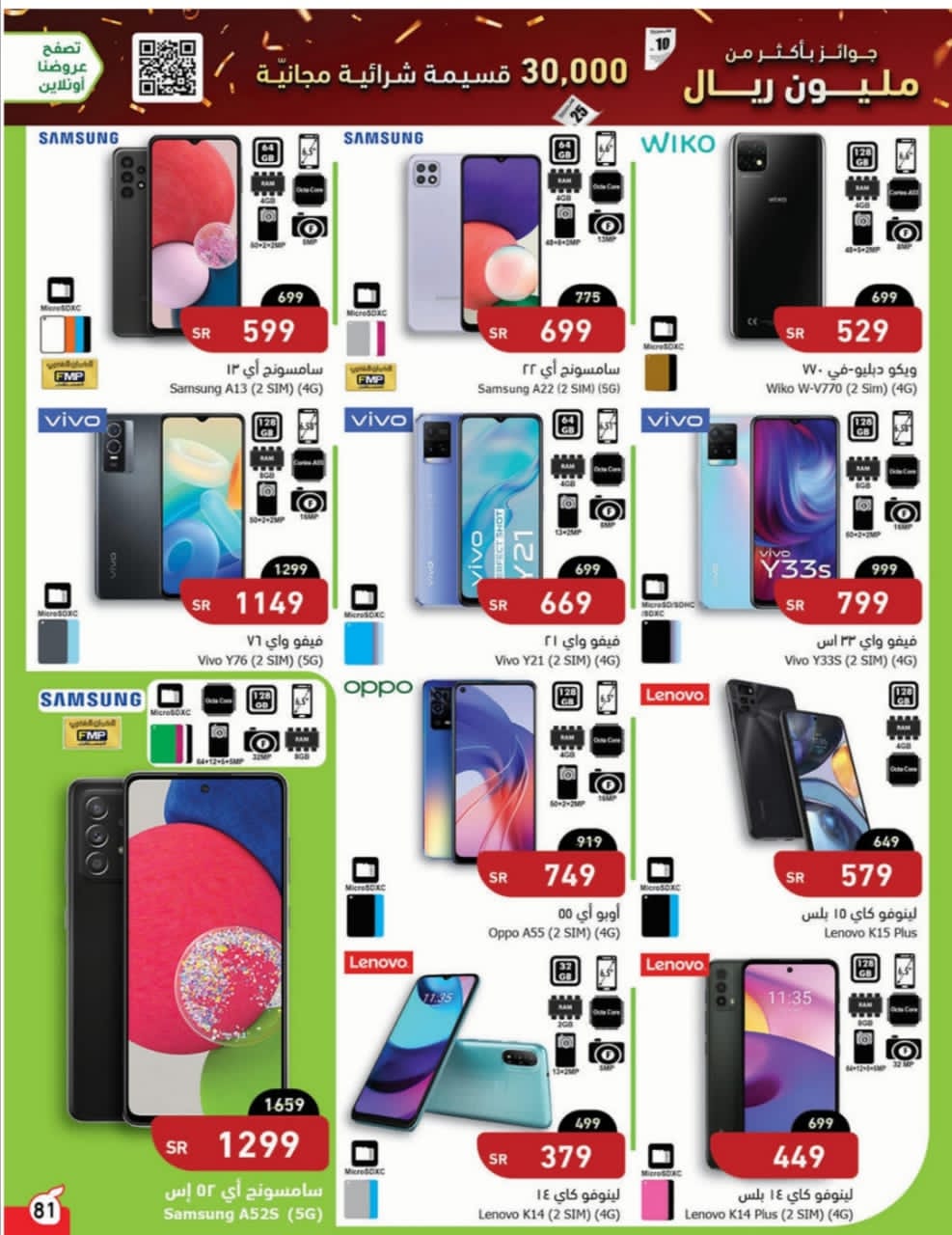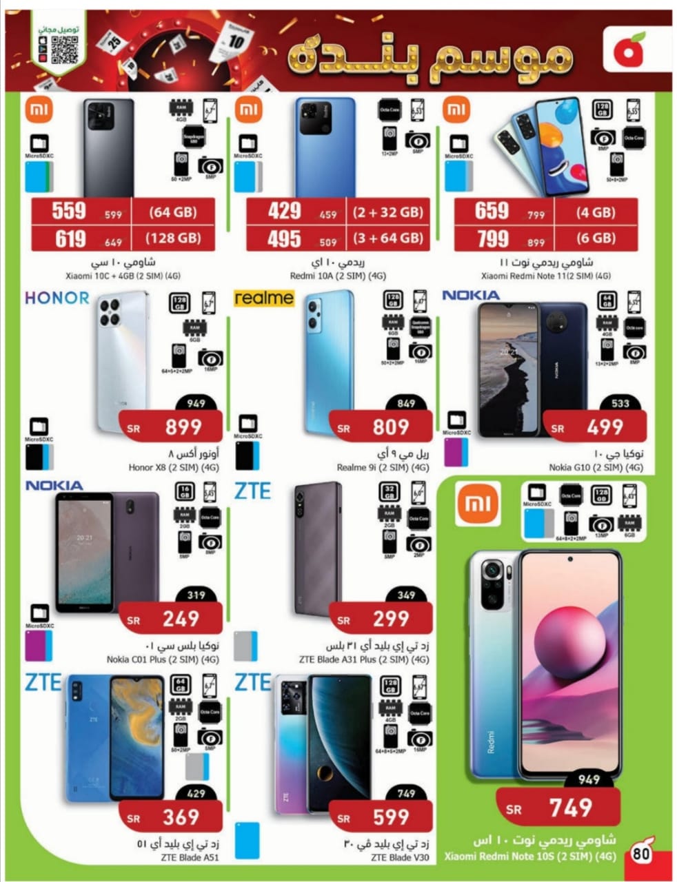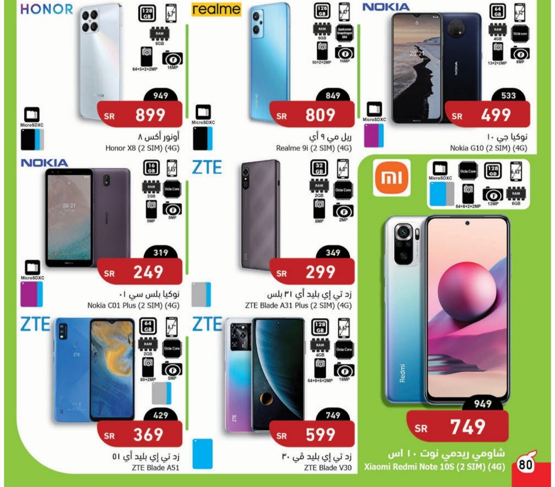توجد العديد من العروض والخصومات الهائلة على أنواع مختلفة من الهواتف الذكية من بينها هواتف نوكيا ومن العروض التي تم طرحها، هاتف نوكيا جي 10 (NOKia G10(2SIM 4G بسعر 499 ريال سعودي بدلاً من 533 ريال، كما تم طرح هاتف نوكيا بلس سي 01 بسعر 249 ريال سعودي بدلاً من 319 ريال سعودي.