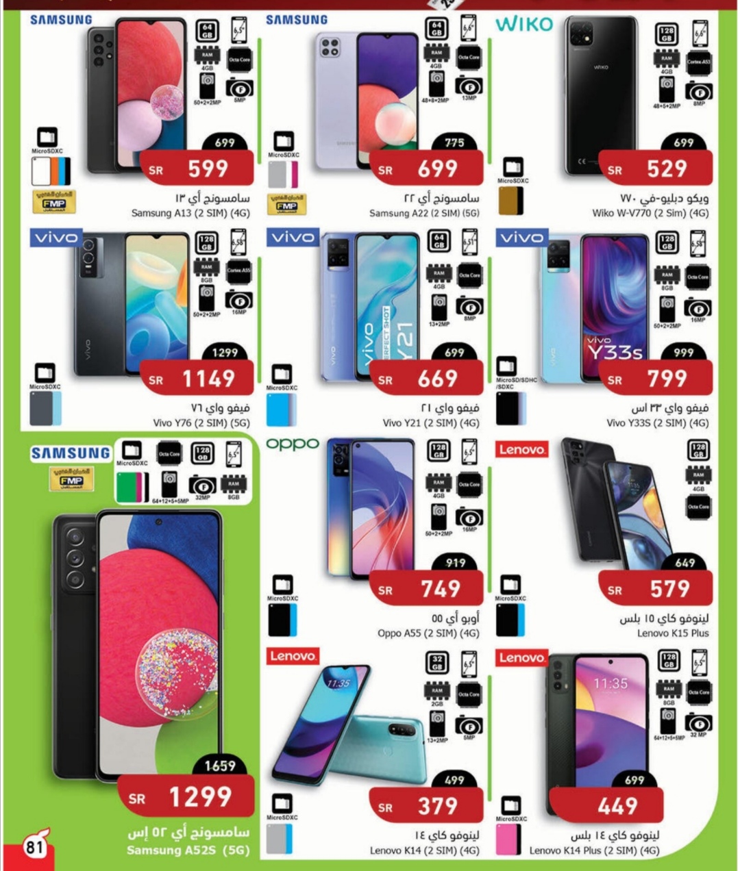 - هاتف سامسونج أي 22 بسعر 699 بدلاً من 775 ريال سعودي.