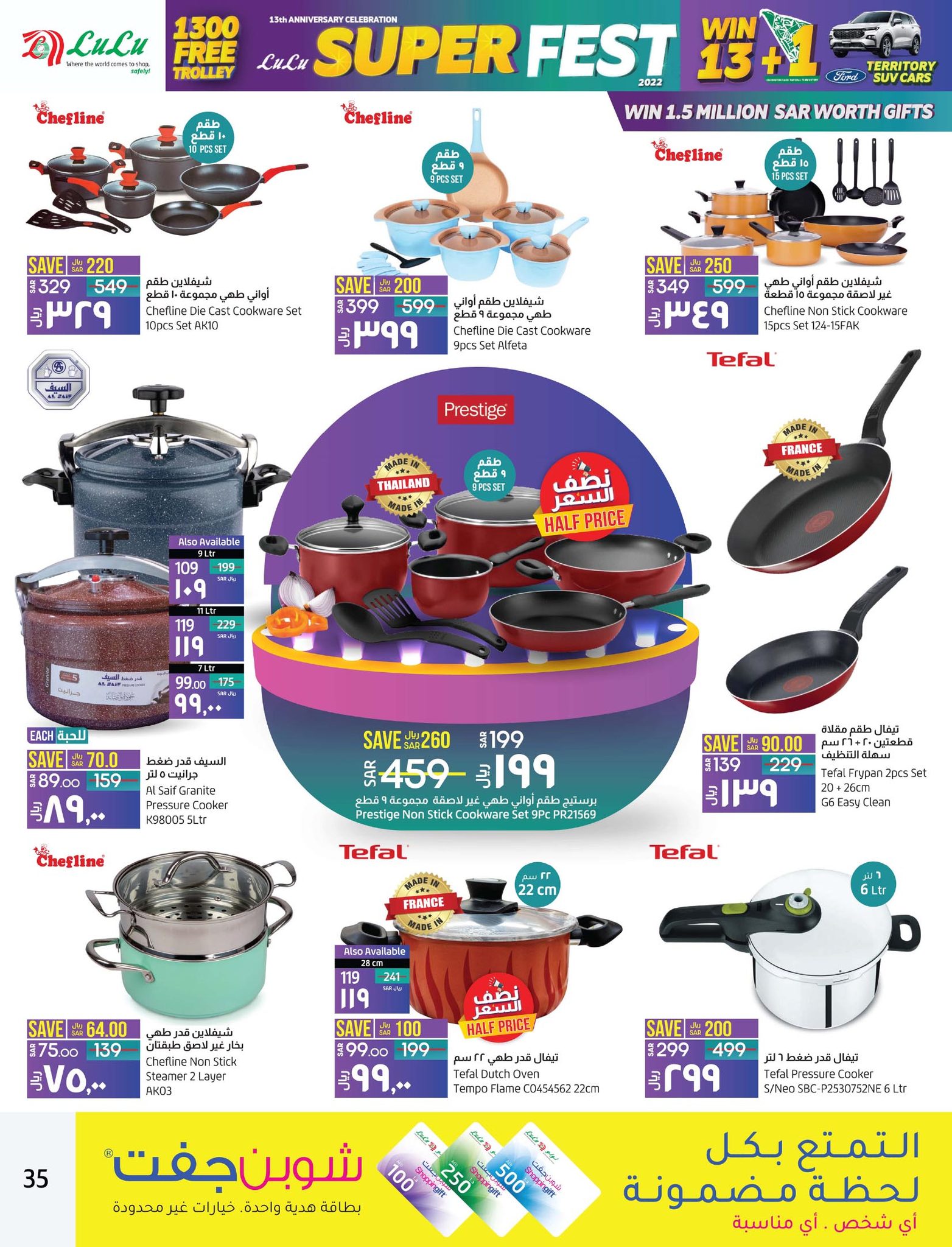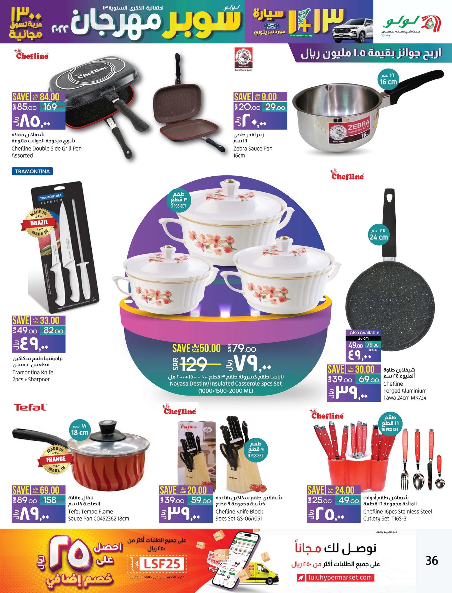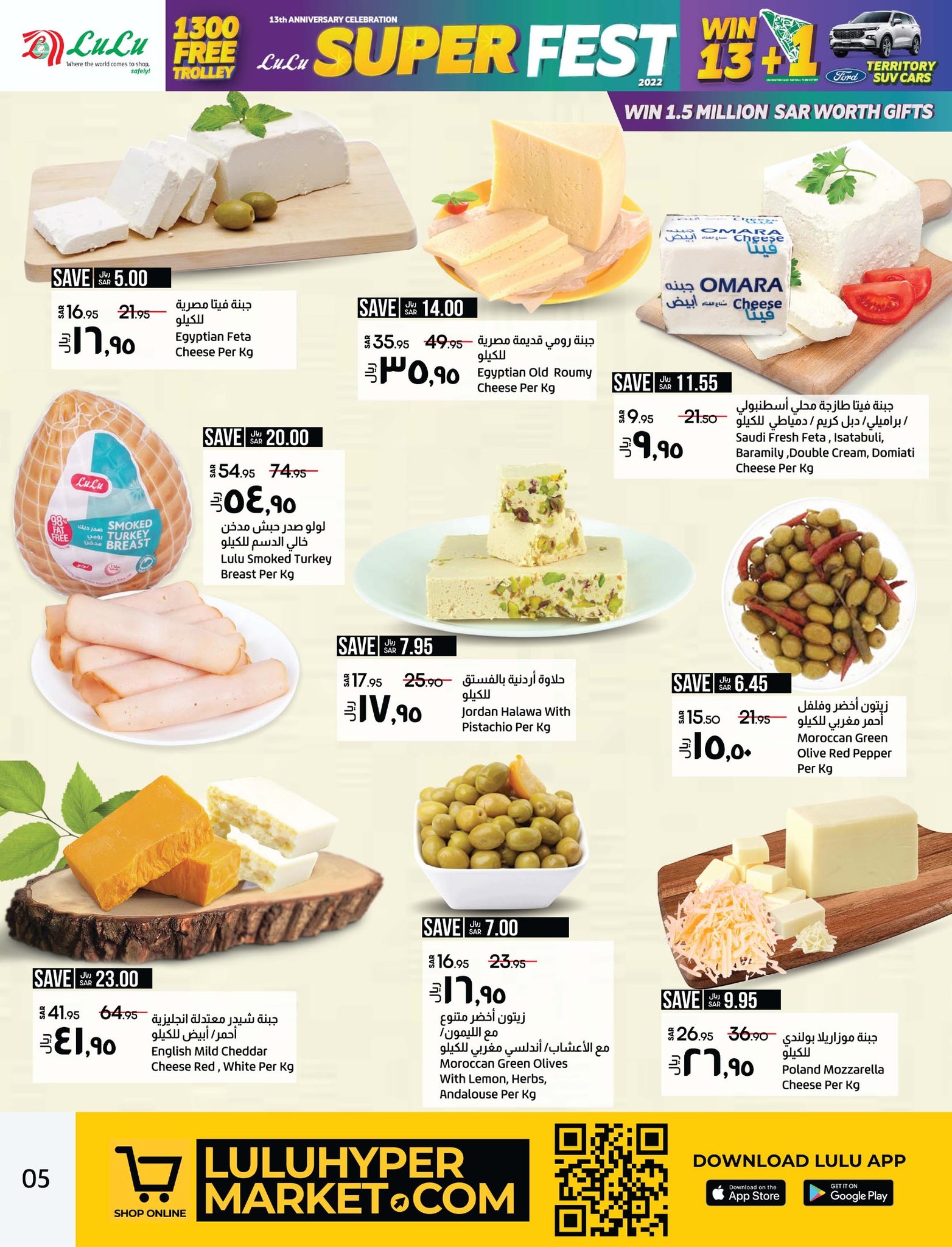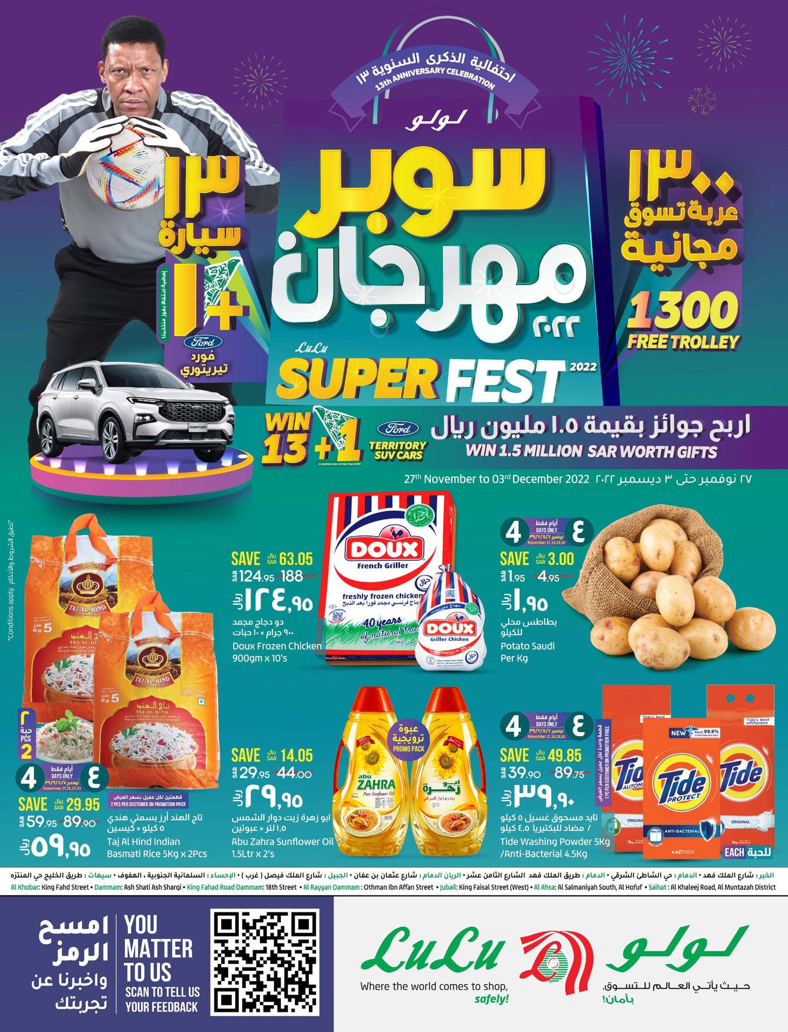 عروض لولو هايبر ماركت تقدم أقوى العروض والتخفيضات على جميع مستلزمات المنزل المتنوعة من السلع الغذائية والأدوات المنزلية وغيرها العديد، كل هذا وأكثر بمناسبة الذكرى السنوية الـ 13 على إنشاءها في المملكة العربية السعودية، بالاضافة الى فرصة الفوز بالعديد من الهدايا القيمة منها فرصة الفوز ب 13 + 1 سيارة فورد تيريتوري الجديدة كلياً، و 1300 عربة تسوق مجانية كل هذا وأكثر من خلال مهرجان عروض السوبر من لولو ماركت.
