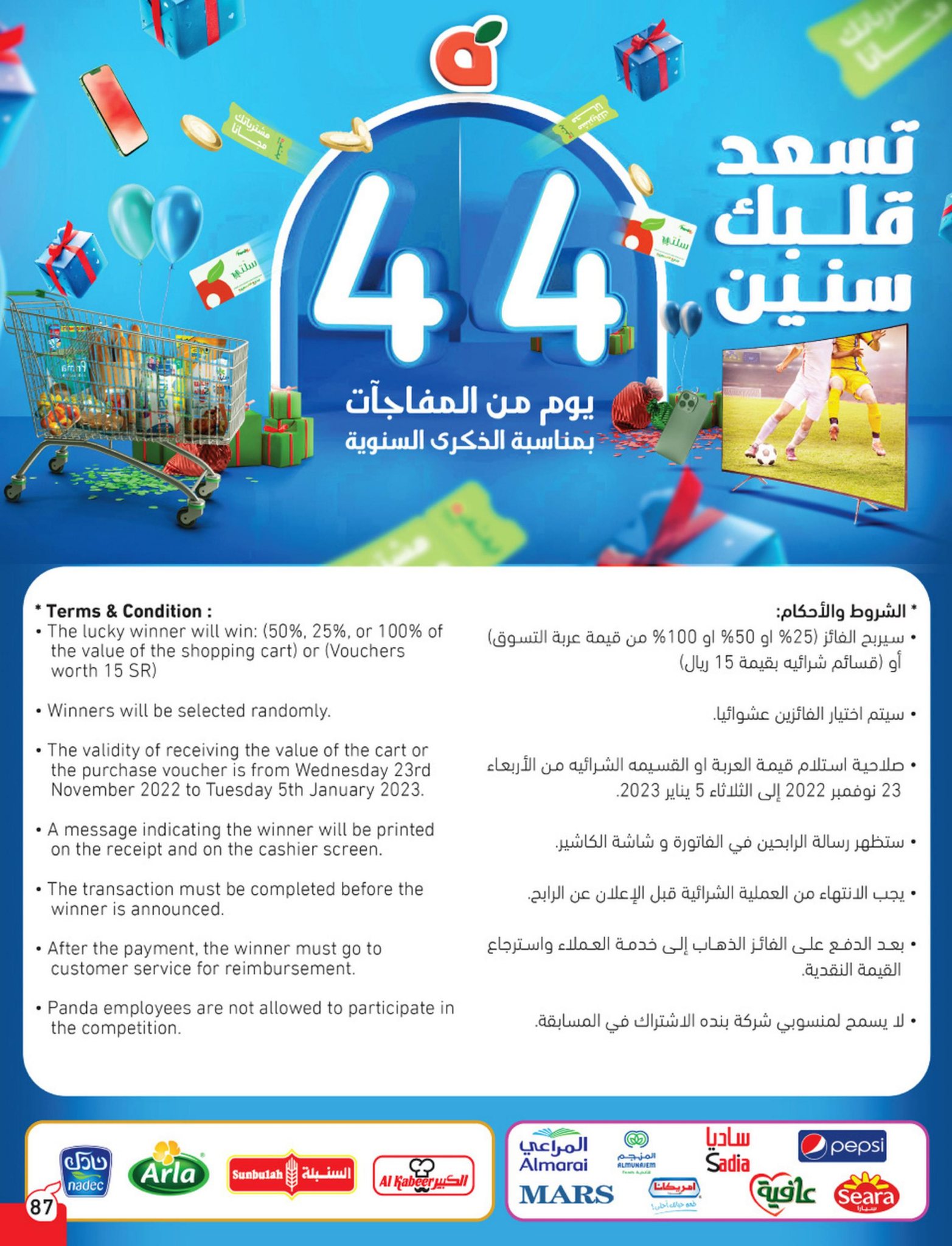 عروض بنده هايبر بنده تقدم أقوى العروض والخصومات بمناسبة الذكرى السنوية لها، وبهذه المناسبة تقدم مسابقة لعملائها القيمين والتي تتيح لهم فرصة الفوز بقسائم شراء مجانية أو تحصل على خصم بنسبة قد تصل 100% من قيمة عربة التسوق، وذلك وفق البنود والشروط التي حددتها مجموعة بنده هايبر بنده المنتشرة حول المملكة العربية السعودية، والتي سوف نوضحها لكم من خلال هذا المقال بالتفصيل بالإضافة إلى عروض الأدوات المنزلية والأجهزة الكهربائية لهذا الأسبوع.