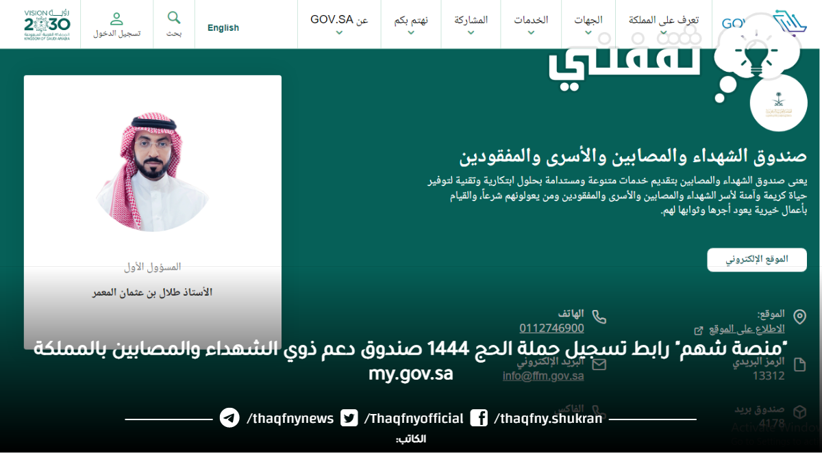 “منصة شهم” رابط تسجيل حملة الحج 1444 صندوق دعم ذوي الشهداء والمصابين بالمملكة my.gov.sa
