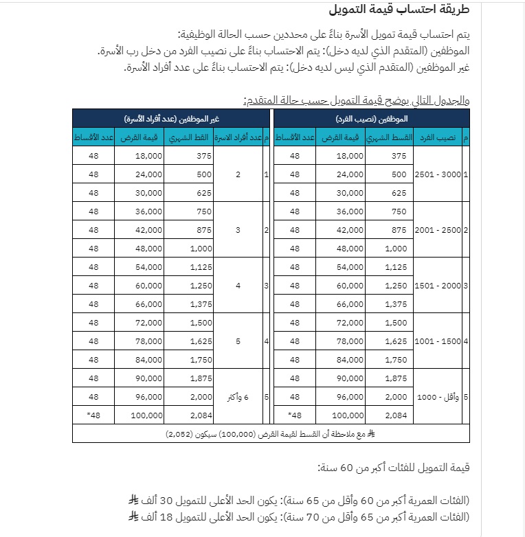 - غير الموظفين الذين ليس لهم دخل شهري، فيتم احتساب بناءاً على عدد الأفراد.