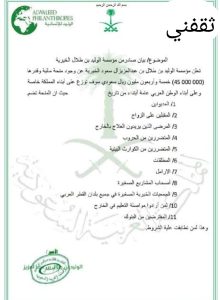 رقم واتساب للتواصل مع مؤسسة الوليد بن طلال الخيرية