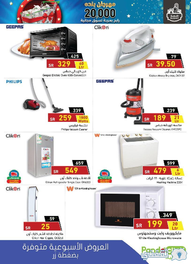 تتضمن تخفيضات بنده بعض ماركات الخلاطات والغسالات والثلاجات بالإضافة إلى المكانس الكهربائية و الأواني وأدوات الطهي وغيرها كثير من المنتجات التي لا غنى عنها في كل بيت.