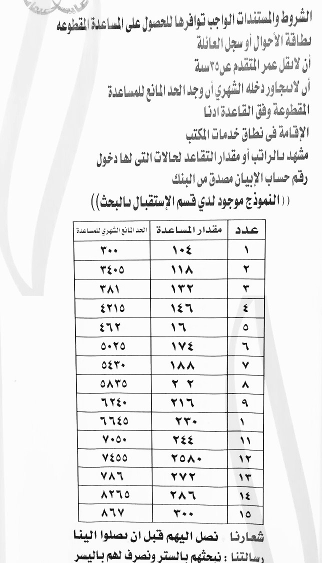• ألا يزيد دخل المستفيد عن 2000 ريال.