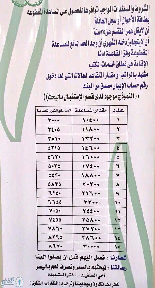 - ألا يزيد دخل الأسرة عن 2000 ريال