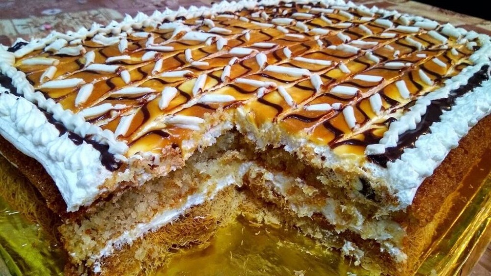بسبوسة الكنافة بالكريمة مدلعة حلواني قطع جاتوة حلويات شرقية في طبق واحد